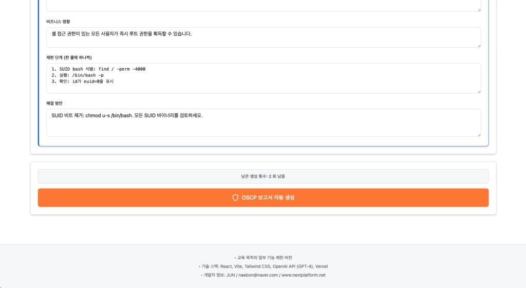 #OSCP #PenTest #침투테스트 #보안자동화 #AI보안 #모의해킹 #보안보고서 #VibeCoding