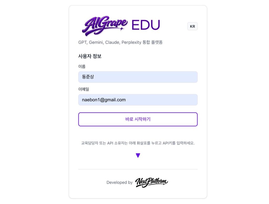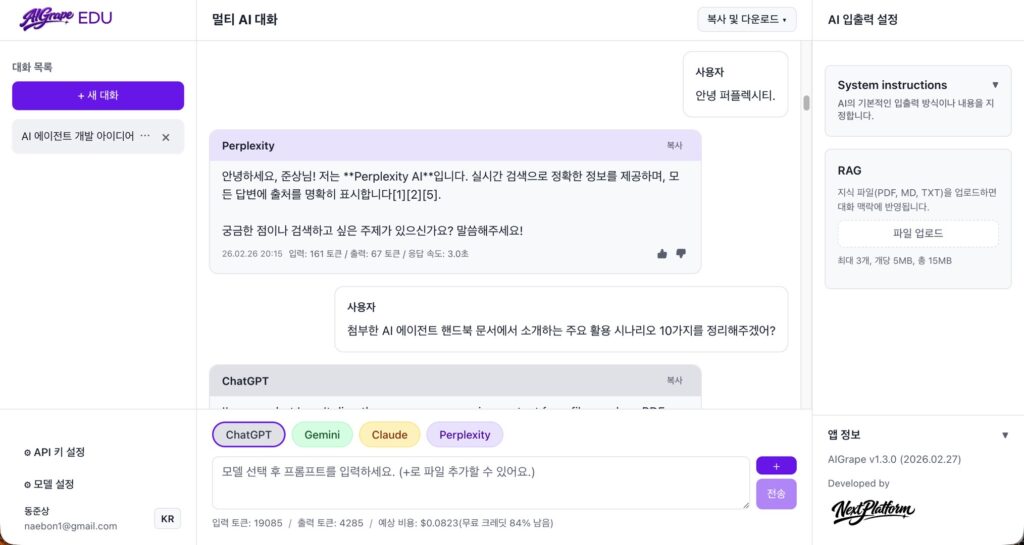 • AIGrape EDU 버전 접속 시 GPT, Gemini, Claude, Perplexity 모델명으로 선택 가능