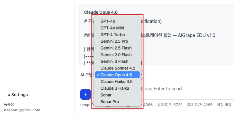 | Claude Sonnet 4.5 Claude Opus 4.6 Claude Haiku 4.5 Claude 3 Haiku | 논리적 구조 분석, 세련된 문체 교정 및 방대한 분량의 긴 문서 분석 강점 | 심층 문서 분석 및 보고서 문체 교정 |