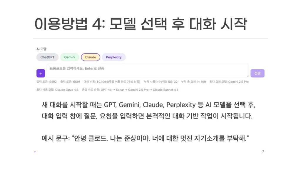 - 대화 도중 모델을 변경해도 기존 맥락이 유지되므로 유연한 도구 전환이 가능합니다.