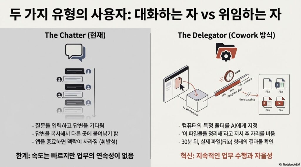 Claude Cowork는 AI와의 상호작용 모델을 근본적으로 변화시킨다.