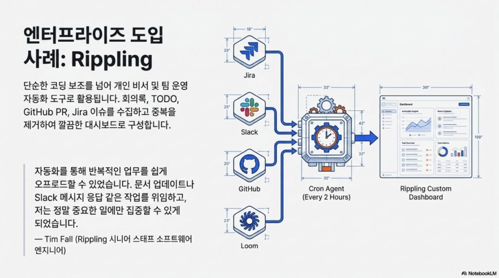 Rippling은 Cursor Automations를 통해 개인 비서 업무부터 팀 단위의 협업 효율화까지 폭넓게 활용하고 있다.