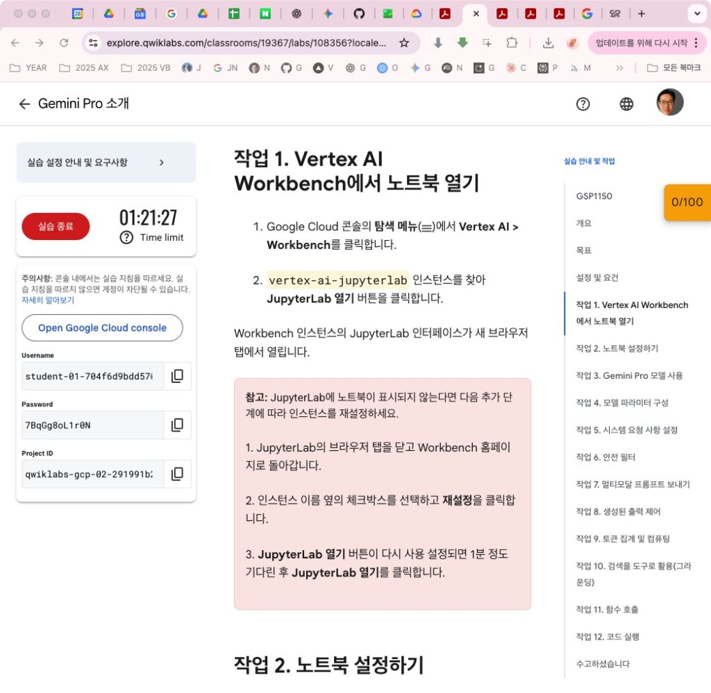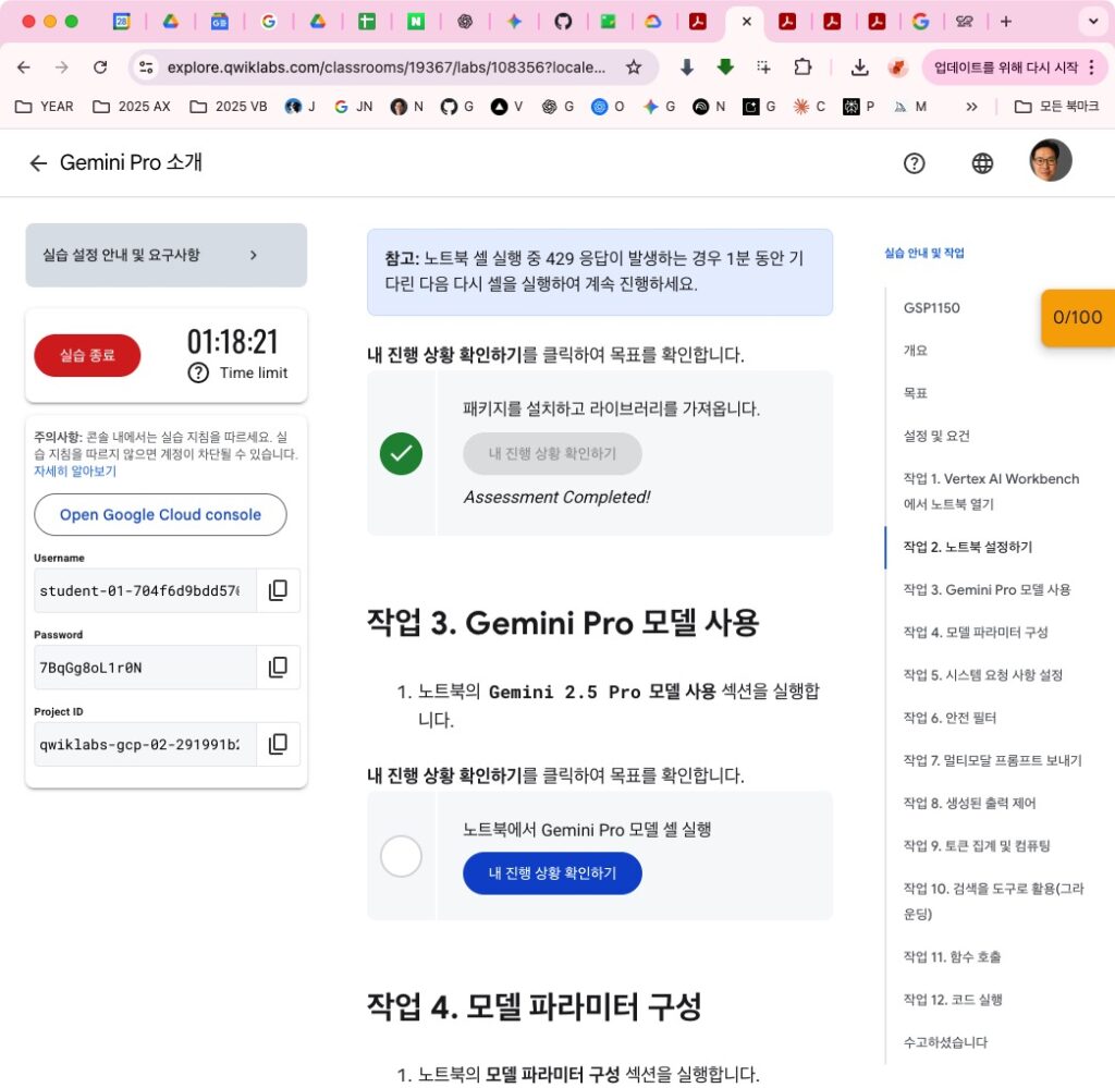 이번 실습 (GSP1150: Google Cloud 사용자 주도형 실습)에서는 구글 클라우드 환경에서 Gemini 2.5 Pro 모델을 사용하여 다음 작업을 수행합니다.