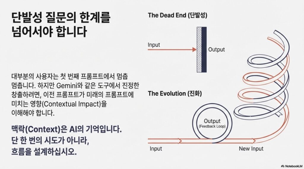 - 대화형 구조: 챗봇의 특성을 활용하여 Gemini와 같은 AI와 주고받는 피드백 루프를 형성한다.