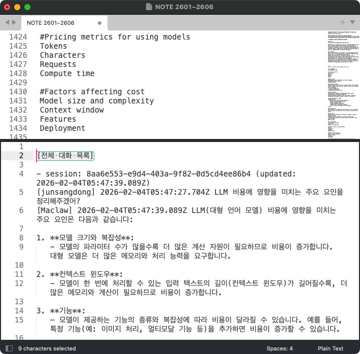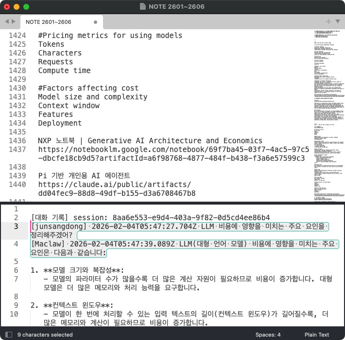 4단계. cmd + shift + H 키: 대화 기록 확인