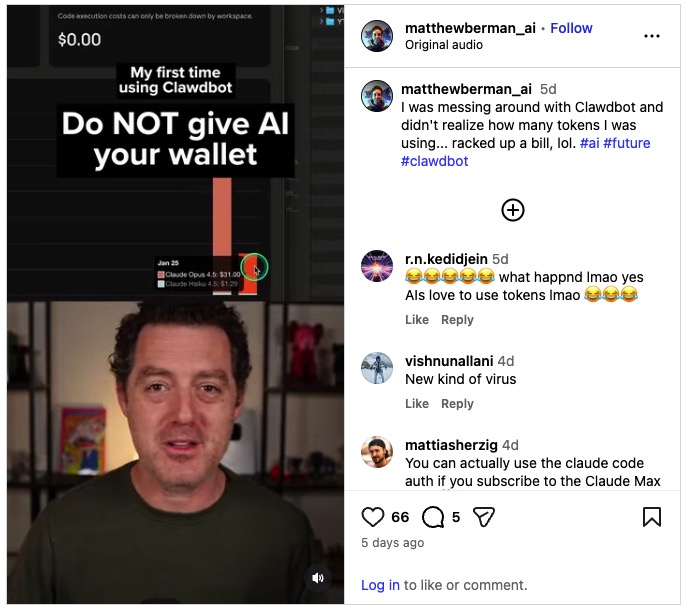나의 맥 미니에 OpenClaw를 설치한 이유는 LLM API 호출 비용 외에는 인스턴스 실행 비용이 발생하지 않기 때문입니다. 오픈클로 설치를 권장하는 AWS 등 퍼블릭 클라우드 인스턴스에 설치 및 이용시 간단한 실험 또는 검증이라는 기대치에 비해 많은 비용이 발생할 수 있습니다. OpenClaw를 설치하고 하루 이틀 정도 실험적으로 이용했던 다수의 테크 유튜버들이 일일 130~150달러의 이용료가 발생했다는 후기를 볼 수 있습니다.