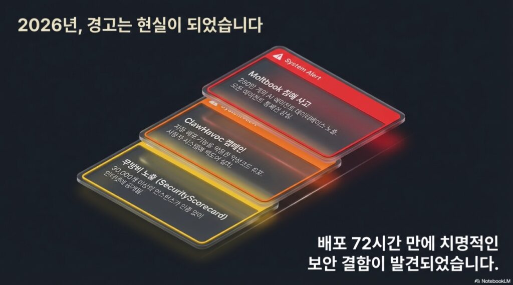 - 사례: 에이전트용 소셜 네트워크인 ‘몰트북(Moltbook)’에서 데이터베이스 노출 사고 발생.