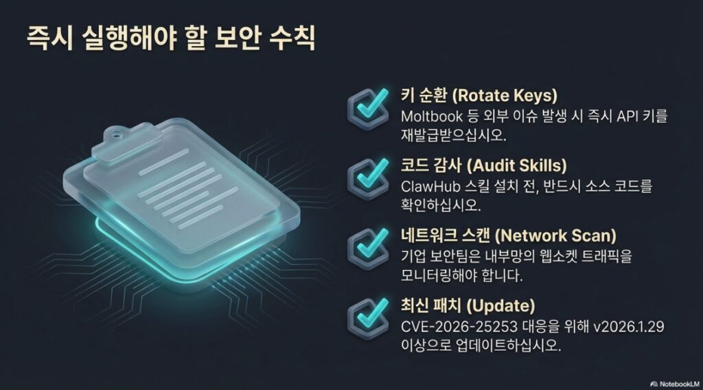 - 기업 보안 팀은 네트워크 내 무단 오픈클로우 인스턴스 탐지를 위한 모니터링을 강화해야 합니다.