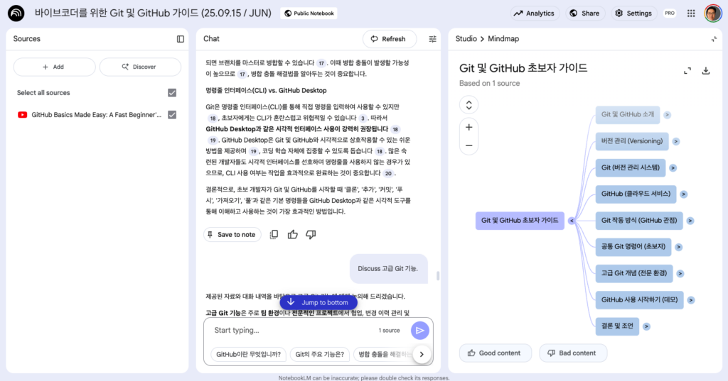 NotebookLM | 바이브코더를 위한 Git 및 GitHub 가이드 (25.09.15 / JUN)