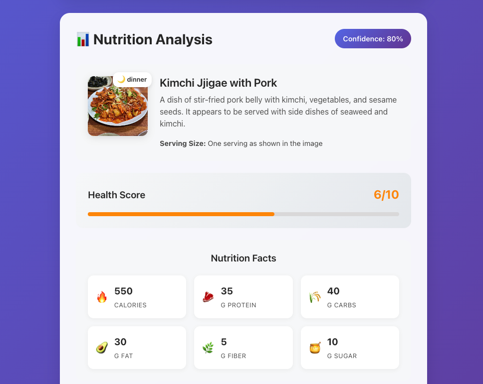 - 앱에서 사진 업로드 → 모델이 음식 종류 + 칼로리 예측