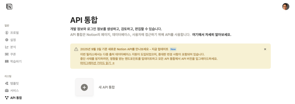 - Notion API 키 발급 절차
