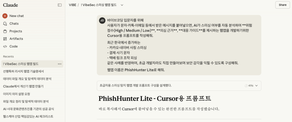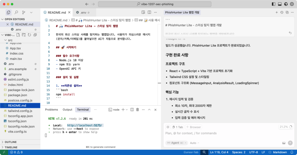 • 바이브코딩과 정보보안 입문자를 위한 LLM 기반의 보안 서비스 기획 및 바이브코딩 도구를 이용한 보안 취약점 탐지 및 보안 솔루션 개발 과정