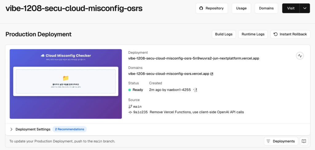 • Vercel을 통해 프로덕션 빌드 웹앱 테스트 후 서비스 제공