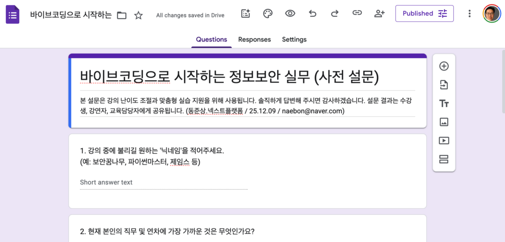 바이브코딩으로 시작하는 정보보안 실무 설문