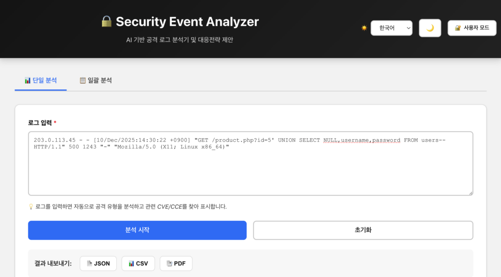 실습 산출물: Security Event Analyzer (AI 기반 공격 로그 분석기 및 대응전략 제어 / 홍혜기.CSSP.보령제약)